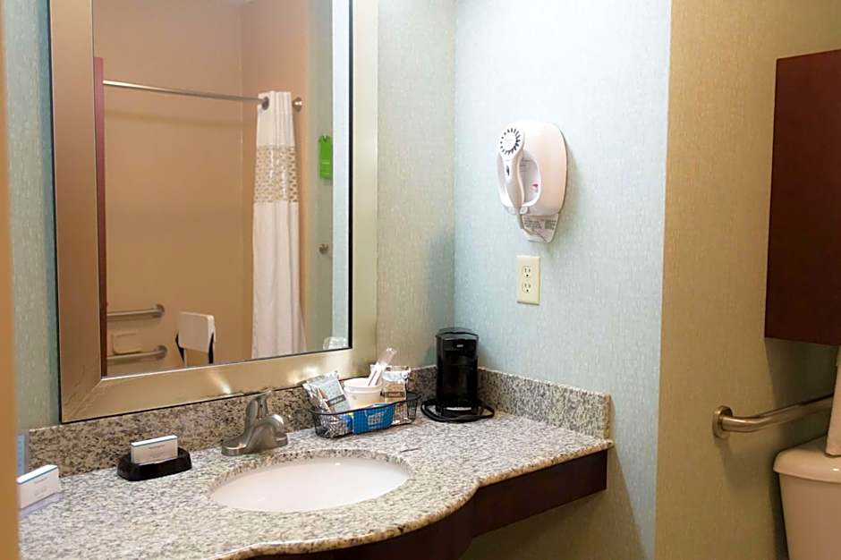 This room offers a flat-screen cable TV and a work desk. A microwave, fridge and coffee maker are included.